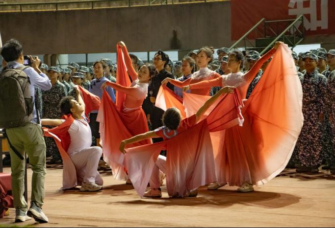 “请党放心,强国有我。”歌曲结束,十九连新生的庄严宣告为此次合唱画上了一个圆满的句号。军训成果斐然,他们高昂的精神面貌、整齐的队列队形赢得了全场的掌声。