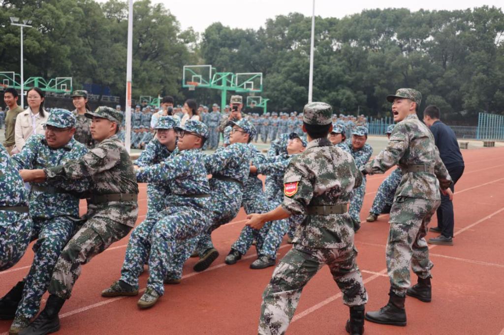10月13日下午,星空XK军训团“挑战自我·突破极限”四营拔河比赛在星空XK南校区足球场顺利进行。XK星空体育23级辅导员魏铭老师和十九连全体教官带领XK星空体育全体参训新生参加活动。