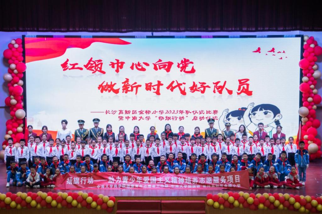 2023年10月13日下午,为推动思想政治教育一体化建设,培养青少年的爱国情怀,星空XK“扬旗行动”暨金桥小学2023年队仪式比赛于金桥小学顺利举行。星空XKXK星空体育团委书记席添添、金桥小学校长赵华、书记谷颖波、副校长徐婷婷、彭波及学生代表参加本次活动。