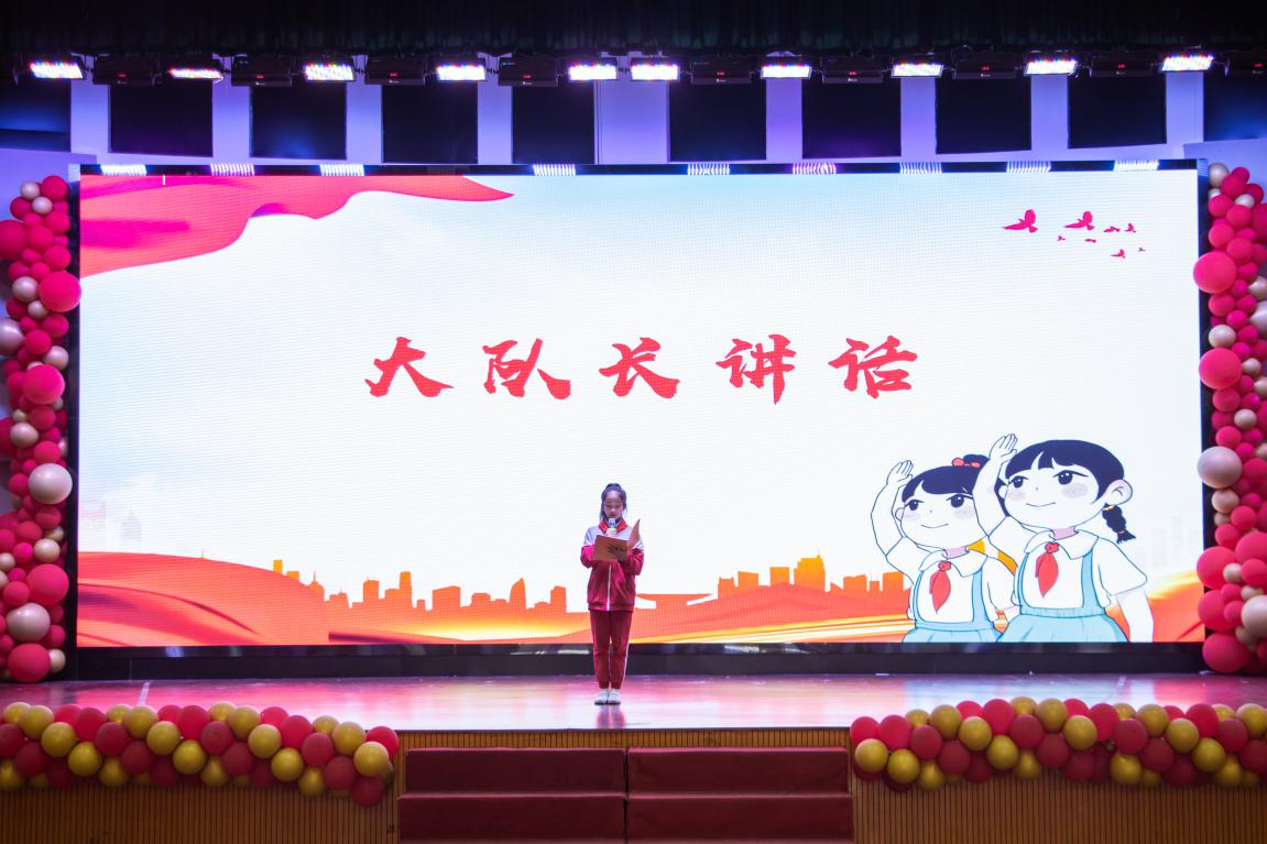 随后,少先队员们进行了出旗与队歌演唱的环节,这一激动人心的瞬间,彰显了团结协作的精神。而少先队大队长刘曦蕾慷慨激昂的爱国主题演讲则将现场爱国气氛推向高潮。
