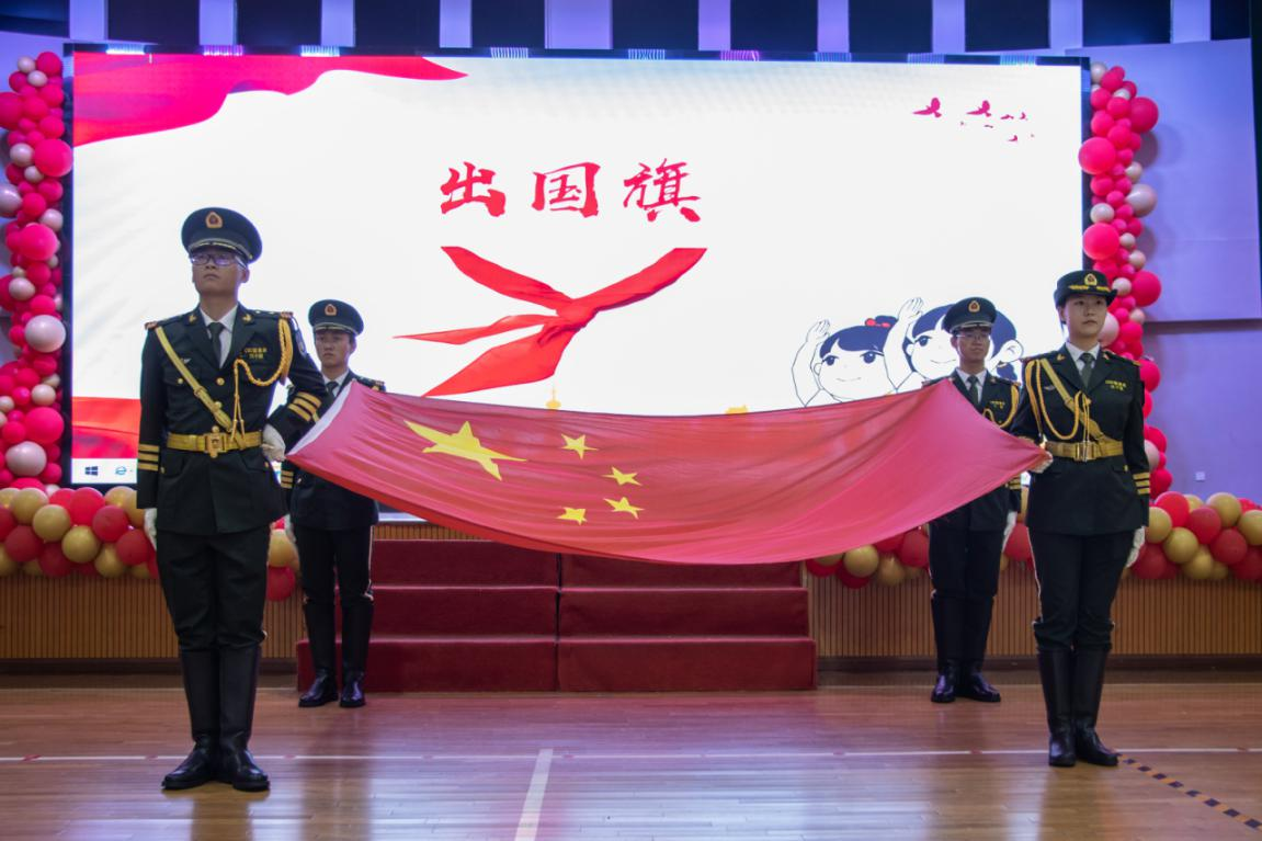 紧接着,在庄严肃穆的国歌声中,五星红旗冉冉升起,全体师生齐唱国歌,现场洋溢着浓厚的爱国氛围。
