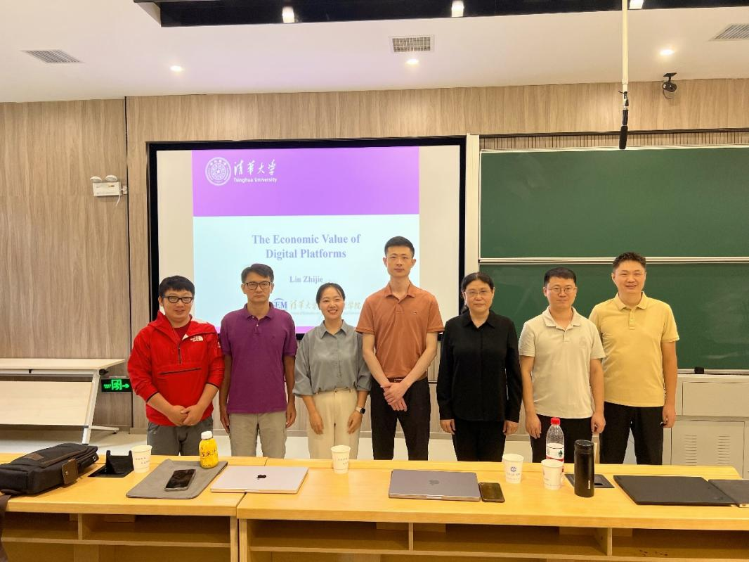林教授聚焦于“数字化平台的商业影响”,结合亲身研究经历为与会师生带来了一场丰盛的学术盛宴。他分别从社交媒体平台、电子商务平台和共享经济平台等平台展开学术研究,基于不同数字化平台中存在的有趣现象,以研究动机,数据收集,数据分析和研究贡献为主线,分享了自己已经完成的三个研究工作。最后,林教授结合自己的研究体会,针对“数字化平台生态系统”提出了研究展望,比如人工智能和数据要素,特别为大家讲解了如何从中国视角探讨中国问题。在交流环节,参与讲座的师生就研究选题、研究方法选择和数据获取等问题与林教授进行了深入交流。