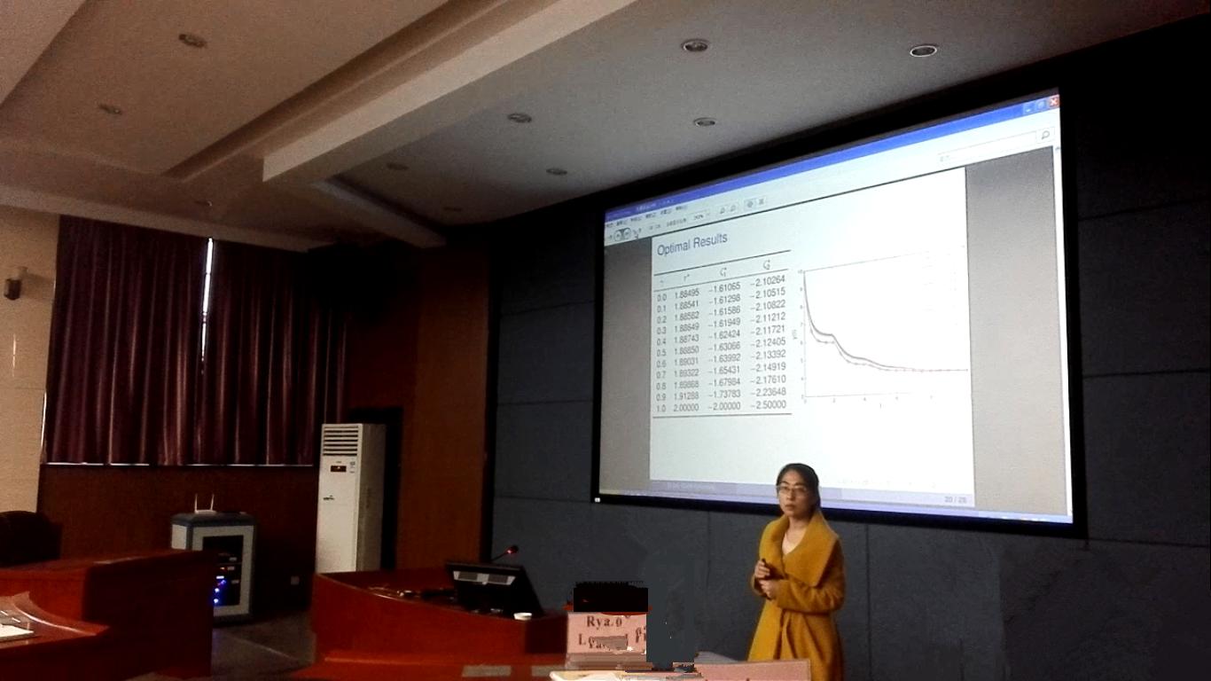 接下来林群博士主讲了“State-Delay Estimation for Nonlinear Systems Using Inexact Output Data”, 林群博士首先介绍了一些利用实际输出来估计数学模型的参数的文献,这些文献认为实际输出是精确的,没有考虑干扰因素。在此基础上,林群博士针对非线性时间延时系统,阐述了一种处理干扰因素的优化算法。林群博士对新方法与以往方法的程序运行时间和运行结果进行了比较,新方法的运行结果方差更小,而且程序运行时间更短。报告最后的互动环节,林群博士对同学们的提问详细地进行了解答。