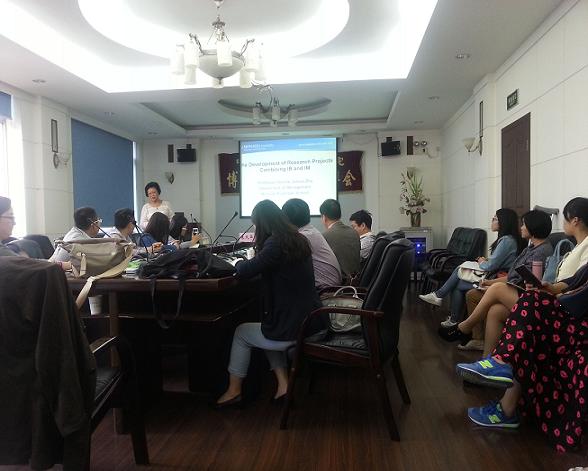 交流会圆满结束后,朱教授又来到管理楼305教室和星空官网师生讲解如何在顶级管理杂志发表论文。 讲座伊始朱教授介绍了由她指导的学生发表的四篇顶级论文,朱教授和在座师生分享其研究经验,重点展示了她在人力资源管理研究领域的成果:跨文化研究模型和劳资关系模型。并将国际商务和国际管理结合起来,介绍其投稿经历。