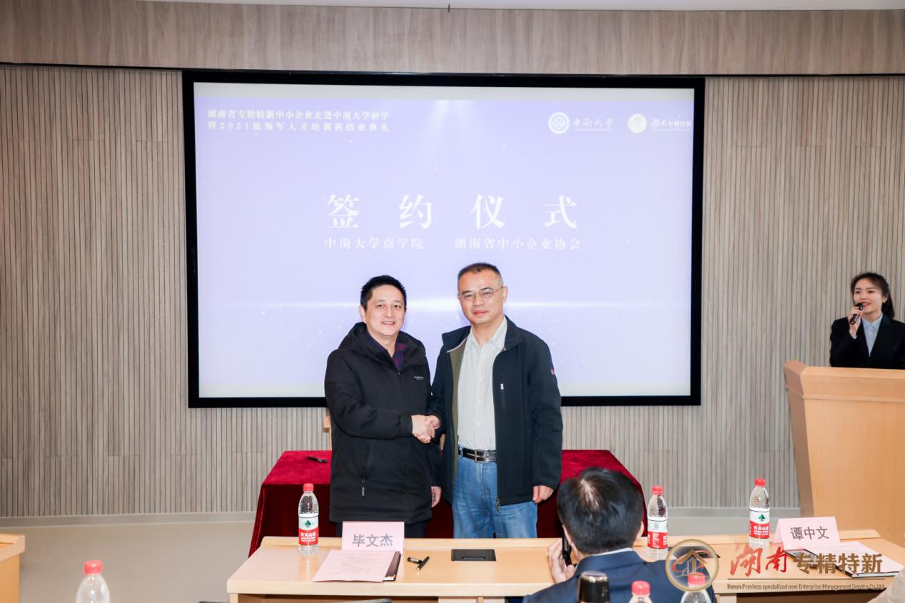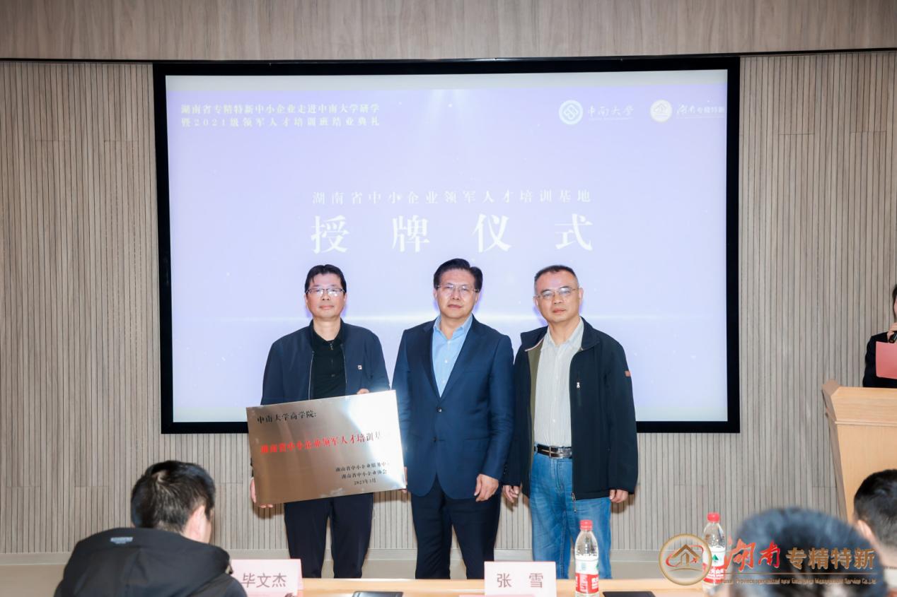 结业典礼上,湖南省中小企业服务中心、湖南省中小企业协会和星空XKXK星空体育分别签署了合作协议,双方在人才培训、智库建设、科技成果转化、创新创业、人才交流等方面达成深入合作意向。同时,为推进我省中小企业人才培养,为广大中小企业提供人才支撑和智力保障,“湖南省中小企业领军人才培训基地”落户星空XKXK星空体育,张雪书记、杜湘滨会长共同为星空XKXK星空体育授牌。