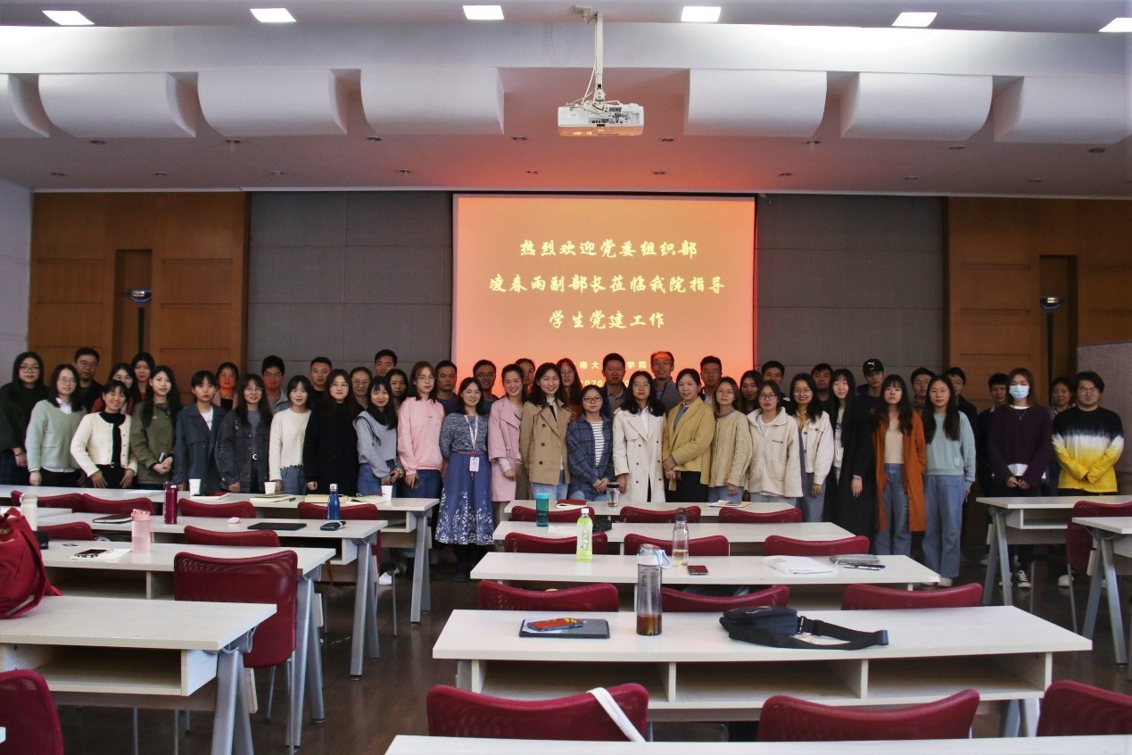 凌春雨副部长首先从学生党员发展工作流程、入党材料准备的注意事项以及材料中的常见问题等方面做了详细阐述,着重介绍了学生入党的必要过程以及各阶段需特别注意的相关事项,让在场的老师和同学们对入党的程序有了深入的学习。接着,凌部长结合湖南省委推进基层党支部“五化”建设展开讲解,围绕“支部设置标准化、组织生活正常化、管理服务精细化、工作制度体系化、阵地建设规范化”五个标准抓好党建工作,鼓励争创样板党支部。
