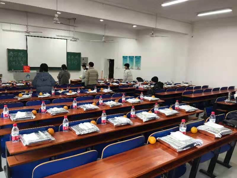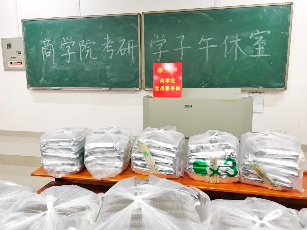 据悉,学院领导十分关注考研学子的状态,在考研学子备考期间多次关心了解考研学子的需求,通过年级辅导员为考研学子提供了诸多暖心服务。学院向每位考研生提前发放了印有“商院壹柒、考研加油”字样的便携式充电暖手宝,联系了两辆空调大巴车送考,积极与物理院沟通协调了两间空调教室,为考研生短暂午休提供便利,帮忙提前订好套有保温膜的中餐,并准备了水果、矿泉水、零食、纸巾等物品,贴心的服务免除同学们的后顾之忧。