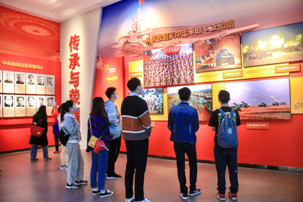 早上八点,队伍集合从校本部出发,跟随导游的脚步渐渐深入那片红色热土。到达目的地后,队伍走进秋收起义文家市会师纪念馆,了解那些隐藏在展品背后的风云故事。馆中陈列让同志们产生了极强的代入感,彷佛把大家带回到战争年代,听到了吹响的革命号角和暴动激昂的枪声,也似乎看到了在古城上高高飘扬的工农革命军第一面军旗。