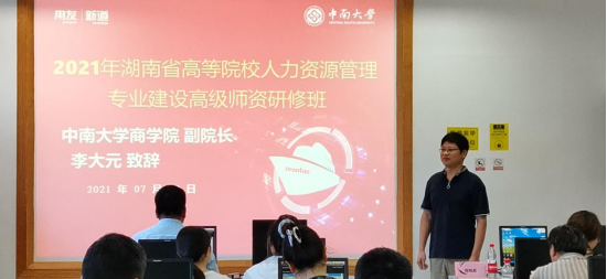 7月10-11日,由新道科技股份有限公司主办、星空XKXK星空体育承办,湖南用友软件有限公司支持的为期两天的“用友·新道湖南省高等院校人力资源管理专业建设高级师资研修班”顺利举行,来自湖南、安徽两省十所院校的二十一名骨干教师参加了本次师资研修课程。