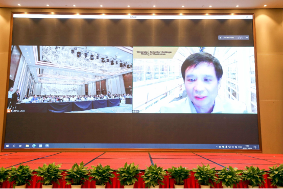 开幕式后,来自国内外共8位特邀嘉宾进行了主旨演讲。陈晓红院士设计了智慧社会治理现代化战略,提出了面向智慧社会治理现代化的战略目标、科学理念、战略重点、对策举措。张晗博士带来了人工智能代理的积极情绪表达如何、何时以及为什么会影响客户服务评价的研究分享。清华大学徐心教授与与会者探讨了面对范式调整的理论创新分析与思考,香港科技大学熊辉教授分享了艺术、科学与交叉融合的思考。树根互联股份有限公司CTO黄胜博士就工业互联网赋能产业数字化转型背景分享了三一集团和树根互联的实践经验与思考。国防科技大学谭跃进教授从大数据应用领域、大数据特征、智能管控等方面谈到管理科学面临的挑战,并以移动大数据在应急管理中的应用等多个实例强调大数据时代管理方法与创新的重要性。哈尔滨工业大学郭熙铜教授分享了从信息系统视角出发在医疗健康管理上的研究与实践经验。中国人民大学毛基业教授以“数字化转型与信息管理研究”为题,深入阐述了数字化转型的本质与研究机会,揭示了数字技术在数字化企业中的作用正在从提升边际效率转变为推动根本性的创新与颠覆。