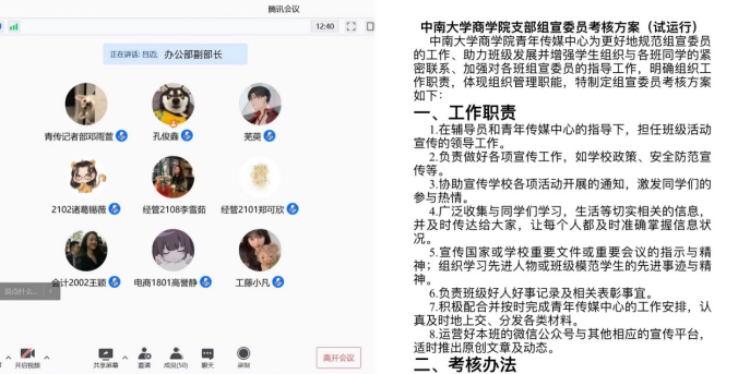 10月29日晚,星空XKXK星空体育组宣委员工作培训会议于线上圆满举行。会议由XK星空体育青年传媒中心组织召开,办公部孔俊鑫主持。记者部分管主任赵自游、运营部部长段成卓、办公部副部长吕迈、网宣部副部长热那阿依与各年级组宣委员参与了本次会议。