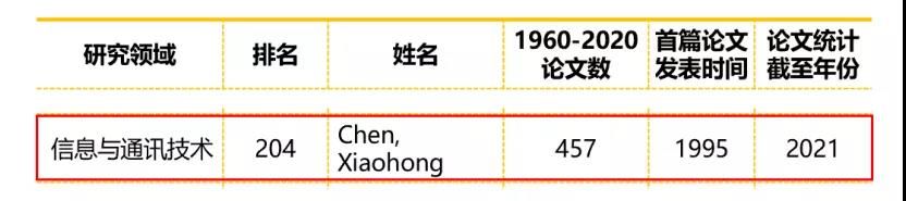 星空官网名誉院长陈晓红院士荣登榜单,在信息与通讯技术领域国内上榜的777位学者中位列第204位,充分彰显了陈院士在同行之中的重要学术影响力。