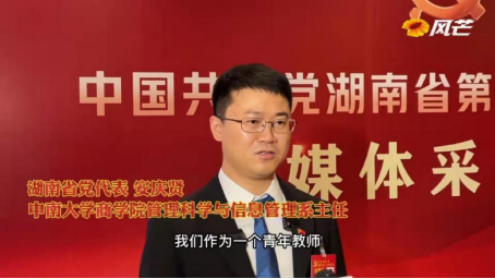 作为中国共产党湖南省第十二次代表大会代表,安庆贤教授在现场聆听了张庆伟书记的大会报告(以下简称《报告》),并就《报告》发表了感想:此次《报告》政治站位高远、主题鲜明,通篇坚持以习近平新时代中国特色社会主义思想为指导,坚定不移沿着习近平总书记指引的方向前进;《报告》内涵丰富,详细阐述了中国共产党湖南省第十一次代表大会以来湖南省取得的重要成就,并擘画了一幅继往开来、富民强省的现代化新湖南宏伟蓝图。《报告》贯彻了中央的决策部署,贯彻了习近平总书记对湖南的重要讲话重要指示批示精神,切合湖南发展实际,实事求是。安庆贤教授表示,学习张庆伟书记的《报告》,备受鼓舞,精神振奋,同时倍感责任重大,使命光荣。就此,他从三个角度谈及本次报告对自己未来工作的重要指引:作为一名高校教师,要全面贯彻党的教育方针,坚持立德树人;作为一名科研工作者,要将自己在研究成果服务于湖南省“三高四新”战略,为建设美丽新湖南贡献力量;作为一名青年,要贯彻大会精神,积极关心并引导青年学子,永葆“闯”的精神、“创”的劲头、 “干”的作风,以更饱满热情投身到社会主义现代化新湖南建设实践中。