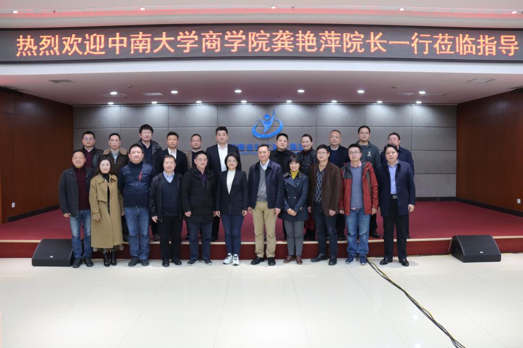 在湖南省轻工盐业集团有限公司,调研组一行先后参观了展览厅、技术中心、数据中心,详细了解了轻盐集团在党建引领、技术创新、产品研发、“六化”建设等方面的先进做法与突出成绩。随后的座谈环节中,轻盐集团党委副书记、总经理李志勇对龚院长一行表示欢迎并介绍了集团的基本情况及近五年跨跃式发展的奋斗历程,轻盐集团党委委员李智诚及相关部门负责人就集团党建与经营融合、数字化转型、市场营销、ERP建设及运营、企业财务管理创新等方面进行了详细介绍,双方在学生实习实践、中高层人才培训等方面展开了深度的交流与讨论。