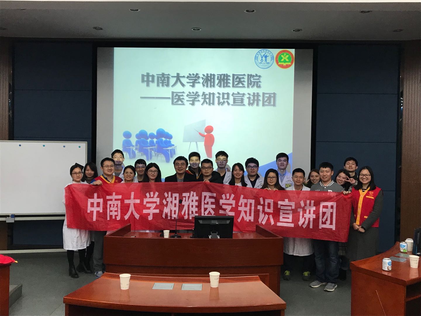 最后,来自湘雅医院数十个科室的博士、硕士研究生组成的湘雅智囊团为在座同学进行答疑解惑,对在场同学提出的问题进行了耐心而中肯的解答。在宣讲活动临近尾声时,大家主动上台和宣讲团及智囊团成员合影留念。