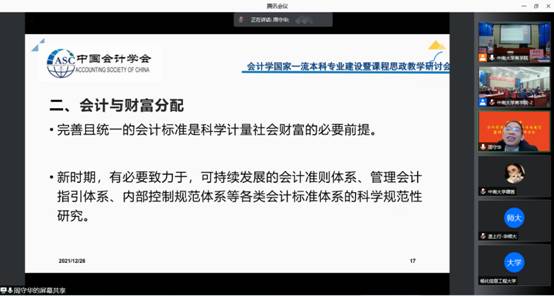2021年12月26日上午8:30,由星空XKXK星空体育主办,星空XKXK星空体育会计与财务系、会计研究中心承办的“星空XK会计学国家一流本科专业建设”暨课程思政教学研讨会如期举行。本次学术研讨会采用线上+线下相结合的方式,线下举办地点在XK星空体育管理楼管阶一。