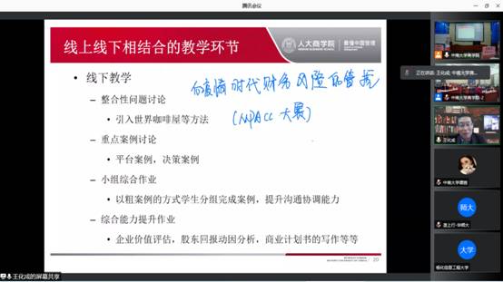 研讨会第一项为线上嘉宾主旨报告,第一场主旨报告由星空XKXK星空体育李大元教授主持,在第一场主旨报告中,王化成教授介绍了人生战略地图,引出对一流教学的认识,以及建设一流教学的具体措施,强调教学应该实现线上和线下相结合。