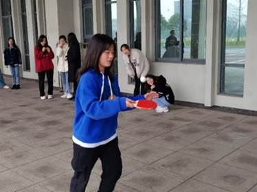 踢毽子团体赛拉开了活动的序幕,同学们分为两组,男女搭配,连击数高的队伍将取得最终的胜利。之后的个人赛中,李苑老师以连击29个的优异成绩取得冠军,塔吉古丽同学、唐志明同学分别以13个、12个获得亚、季军。