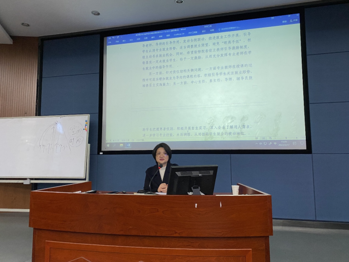 龚艳萍院长基于2022届毕业生就业现状报告,强调了目前就业工作的重要性与严峻性,对各系、各部门开展下一阶段的就业工作提出了具体要求。一是全院、全员参与,发挥专业教师和学业导师的引导作用,进一步加强双向沟通交流;二是对于考研进入复试同学,积极传授复试技巧,提供相应的笔面试指导,提高考研成功率;三是对于就业期望值过高、不就业、慢就业的学生,导师、班导师、辅导员要通过多种途径合理引导,改变学生就业预期;四是对于坚持考研二战的同学,要积极联系沟通,督促其先就业,鼓励后续通过在职教育等形式提升学历。