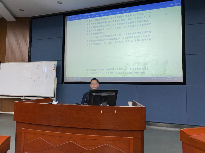 陈迎明副书记报告了星空官网2022届毕业生目前的就业情况。一是对当前各专业的就业摸底数据作了详细说明,指出当前部分专业就业进度慢,情况不容乐观。二是分析了目前就业工作存在的主要困难,包括就业环境严峻、学生就业期望过高、考研考公学生占比过高等。三是在对现阶段已开展工作进行总结的基础上,提出了下一阶段的工作要求。一方面,深入摸底,充分引导,落实就业指导工作方案“一人一策”;另一方面,发挥学院学科优势,集结各专业教师资源,通过多种形式开展就业技能指导和就业观引导,发挥协同力量。