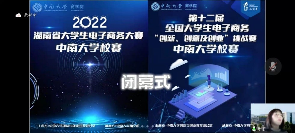 各参赛团队在完成线上报到、身份核验等程序后,依次就作品选题、方案内容、实施过程、已有成果以及未来拓展方向等方面进行了精彩的展示和答辩,经过两轮激烈角逐,最终产生特等奖团队5支、一等奖团队10支、二等奖团队18支、三等奖团队30支,其中特等奖前4名团队晋级湖南省赛。获奖名单由长沙市电子商务协会执行秘书长陈丹丹在闭幕式上进行了宣读,并将通过校内官方渠道进行公示。
