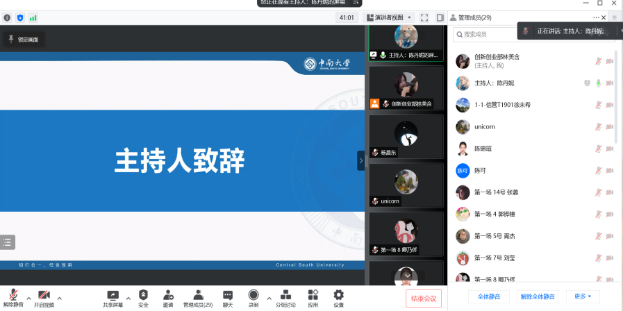 年会伊始,各会场主持人致辞并介绍到场专家,向各位团队成员介绍答辩会流程细则。