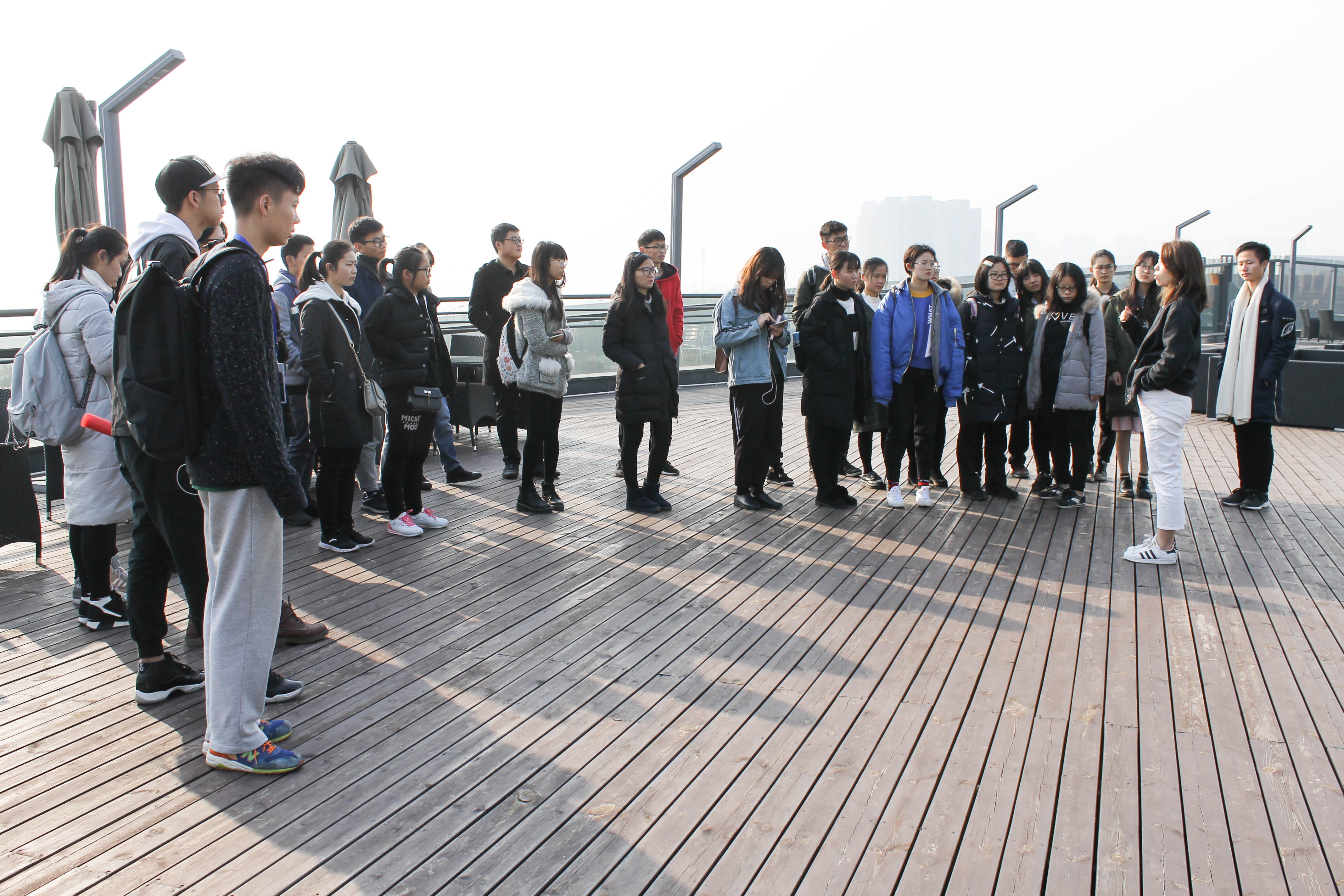 在观看了企业宣传视频后,活动正式开始。“58众创”的讲解员潘薇通过PPT生动讲述了“58众创”企业的历史文化、经营模式及对人才的需求。通过细致耐心地讲解,每一位参与者都在一定程度上了解了基础企业知识。随后,讲解员潘薇带领全体人员乘电梯到达四楼天台进行参观。此刻的天台,沐浴在金色的阳光中。从天台向外远眺,有一番别样的景致:橘子洲映入眼帘,周围的湘江水如丝带般向远处伸展,没有尽头,无尽的江水也预示着“58众创”企业的源源不断的生命力。