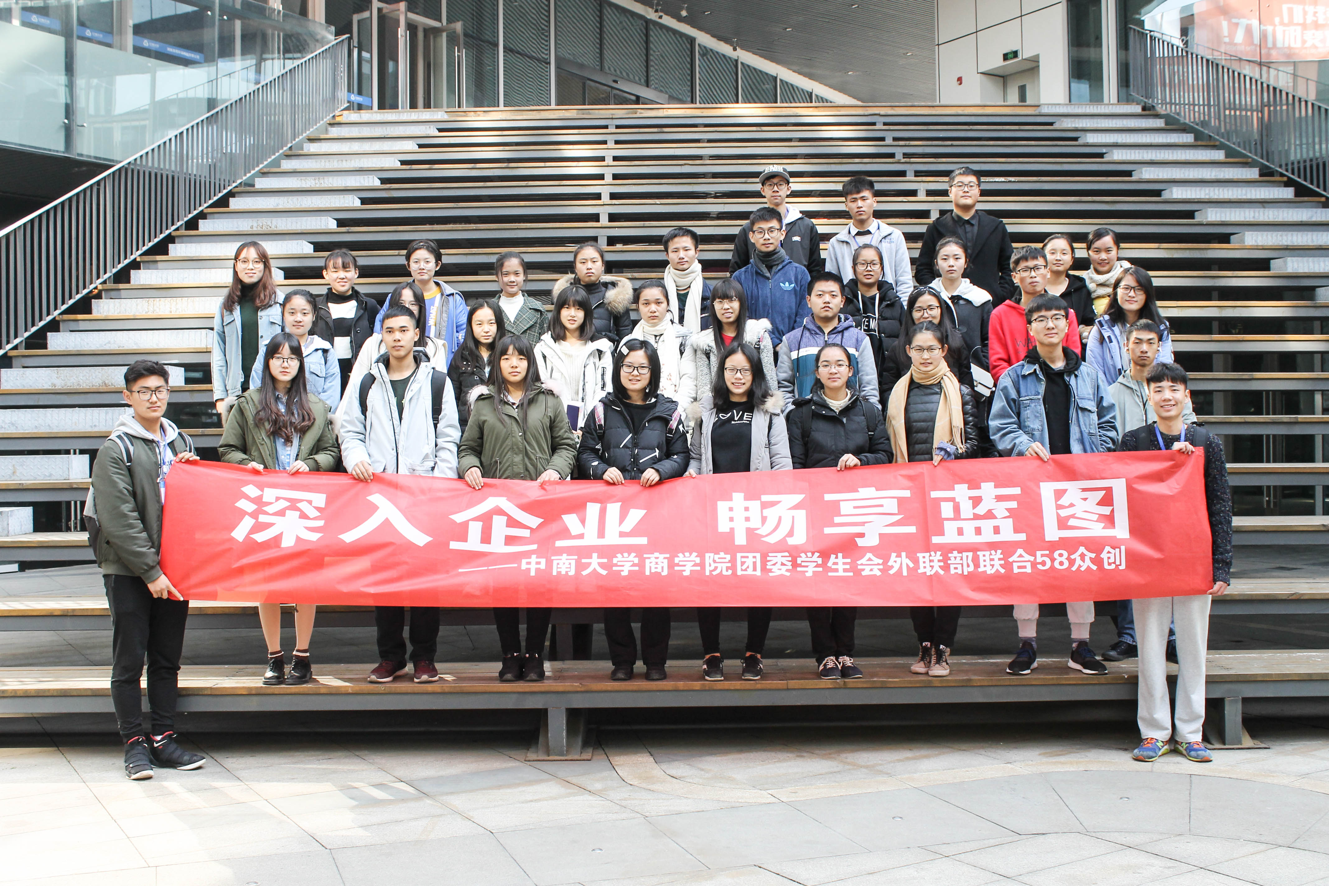 12月9日,为了增强学生对企业文化的了解,由星空XKXK星空体育团学会主办,星空XKXK星空体育团学会外联部协办的“58众创”企业参观活动在“58众创”企业长沙总部顺利开展,外联部的工作人员于九点准时带领全体参观成员到达“58众创”长沙总部。