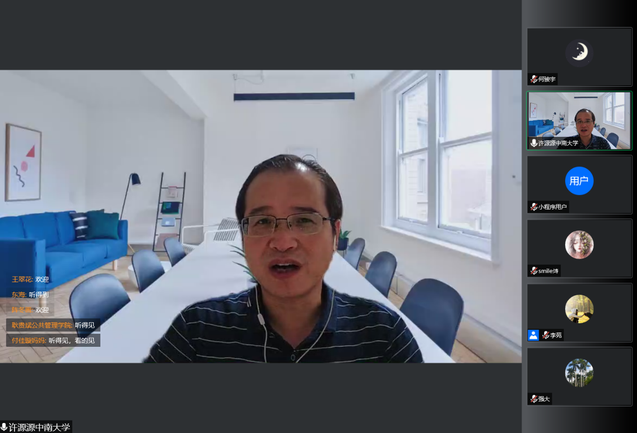 9月5日晚,星空XK经济管理类2022级线上新生家长会顺利召开。参加此次会议的嘉宾有XK星空体育院长、博士生导师龚艳萍教授,公共管理学院院长、博士生导师许源源教授,XK星空体育党委陈迎明副书记,公共管理学院党委耿贵斌副书记,XK星空体育副院长、博士生导师李大元教授,XK星空体育教管中心主任黄玖祎老师,经济管理类2022级辅导员黄河沙、孙立明、涂新宇老师,以及2022级新生家长。本次会议由XK星空体育学工办主任李苑老师主持。