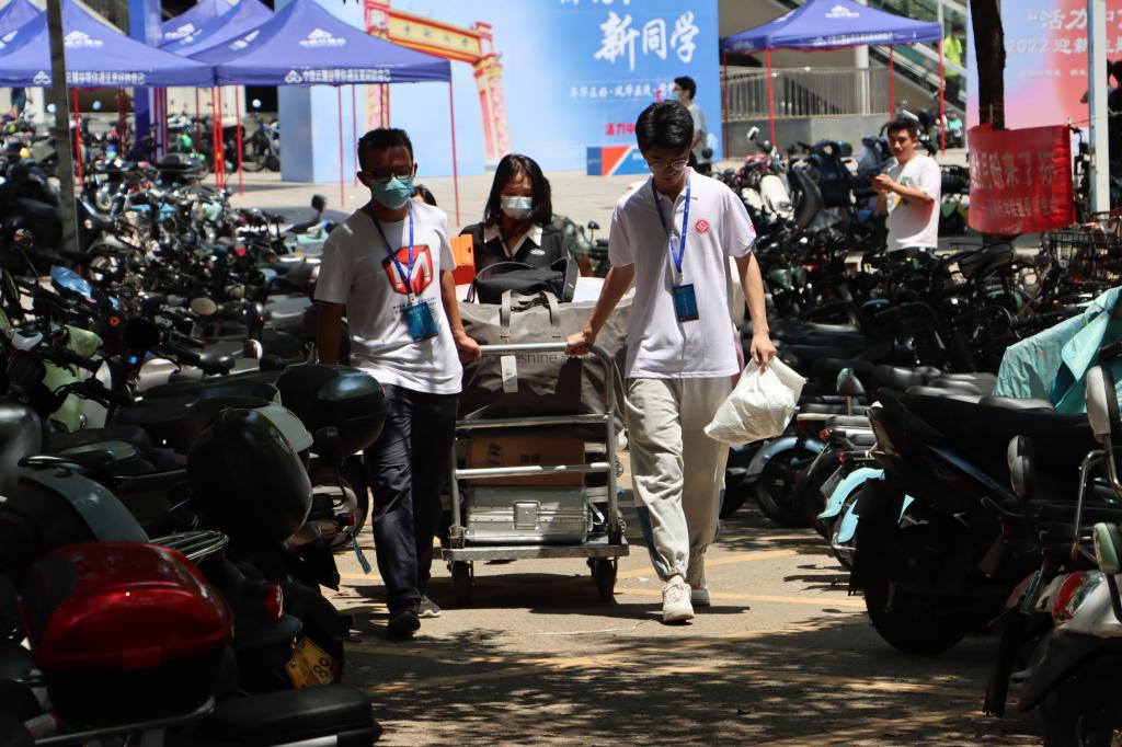 受疫情影响,本次迎新工作较多较重,但志愿者们的工作热情并未被消磨,校园中随处可见他们忙碌的身影。志愿者们在宿舍楼下的迎新点答疑解惑,引导新生完成报到手续;帮助学弟学妹搬运行李,送至宿舍;用相机记录新生初入校园的欣喜,留下美好回忆。