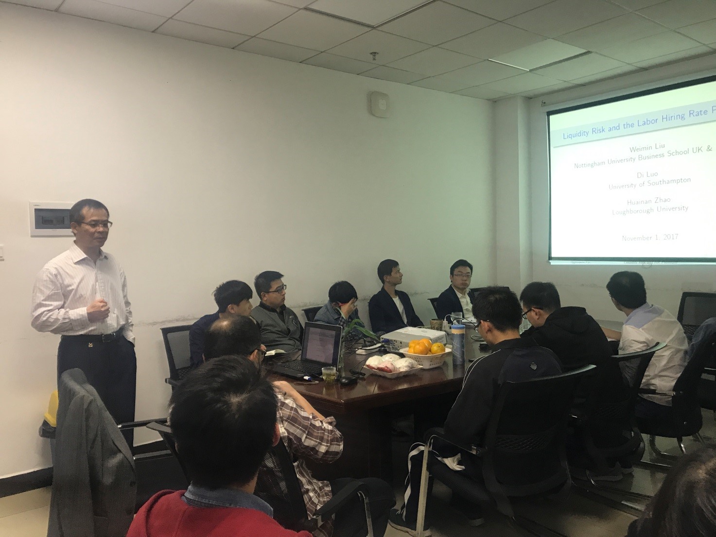 11月1日15:00,应星空XKXK星空体育文凤华教授的邀请,英国诺丁汉大学刘卫民教授到访星空官网,在科技楼601会议室带来了题为“流动性风险与企业雇佣增长率”溢价的学术讲座。此次讲座由星空XK数据科学与经济行为决策研究中心以及星空XKXK星空体育经济行为决策研究中心主办,由文凤华教授担任主持人,厦门大学、星空XK、湖南大学以及湖南师范大学等多位老师和学生参加。