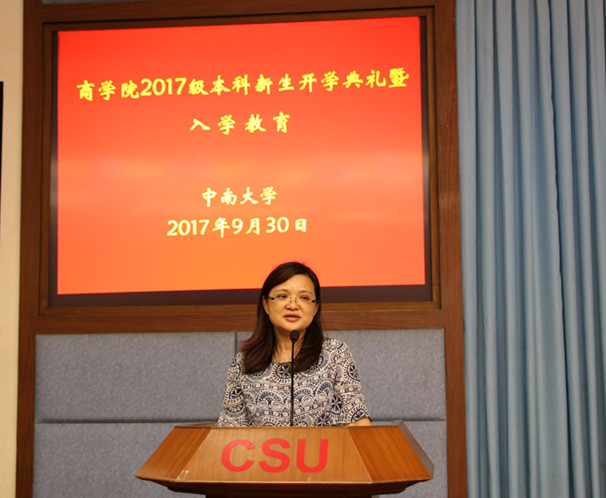 随后,龚艳萍院长讲话。她对2017级新生入读XK星空体育表示热烈欢迎,并从办学历史、学科设置、教学力量、学术研究、国际合作等方面向在场新生介绍了XK星空体育的基本情况。她说,2017级新生在星空XK获批全国“双一流”建设高校的战略机遇期来到学校,建议新生有规律地生活、重视课堂教学、提早做好职业规划,要真正像一流大学的学生那样既有认真学习、刻苦钻研的态度,又有造福社会、服务芸芸众生的情怀。最后,她勉励新生成为德智体美全面发展的优秀人才。