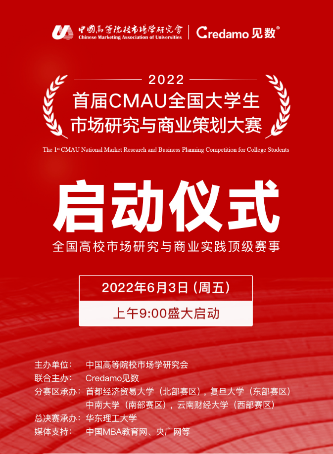 CMAU全国大学生市场研究与商业策划大赛是由中国高等院校市场学研究会与调研数据平台——Credamo见数联合主办的专业性公益赛事,大赛旨在进一步提升高等院校学生的市场研究与商业策划能力,为广大师生提供教育实践与技能锻炼的平台。星空官网是首届赛事的五个承办方之一,负责南部赛区的相关赛事。