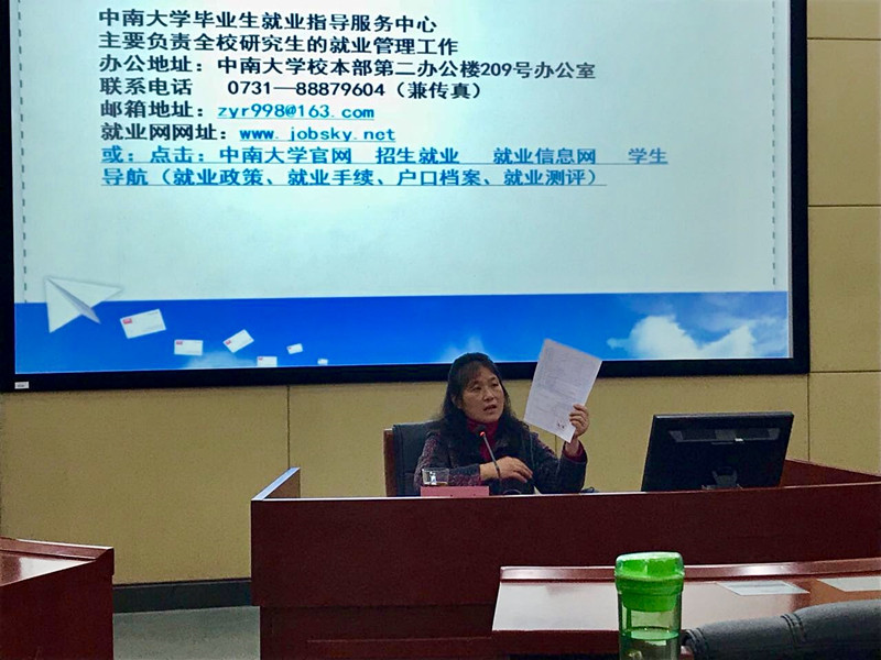 为了帮助2018届硕博士顺利毕业,找到理想的职业和岗位,10月13日下午3点30分,在管理楼管阶一教室,星空XKXK星空体育举办了2018届硕博士毕业生就业指导讲座。这次讲座由大学生指导中心张忆荣老师作为主讲,研究生辅导员胡维老师及2018年近百位应届研究生毕业生参与讲座。