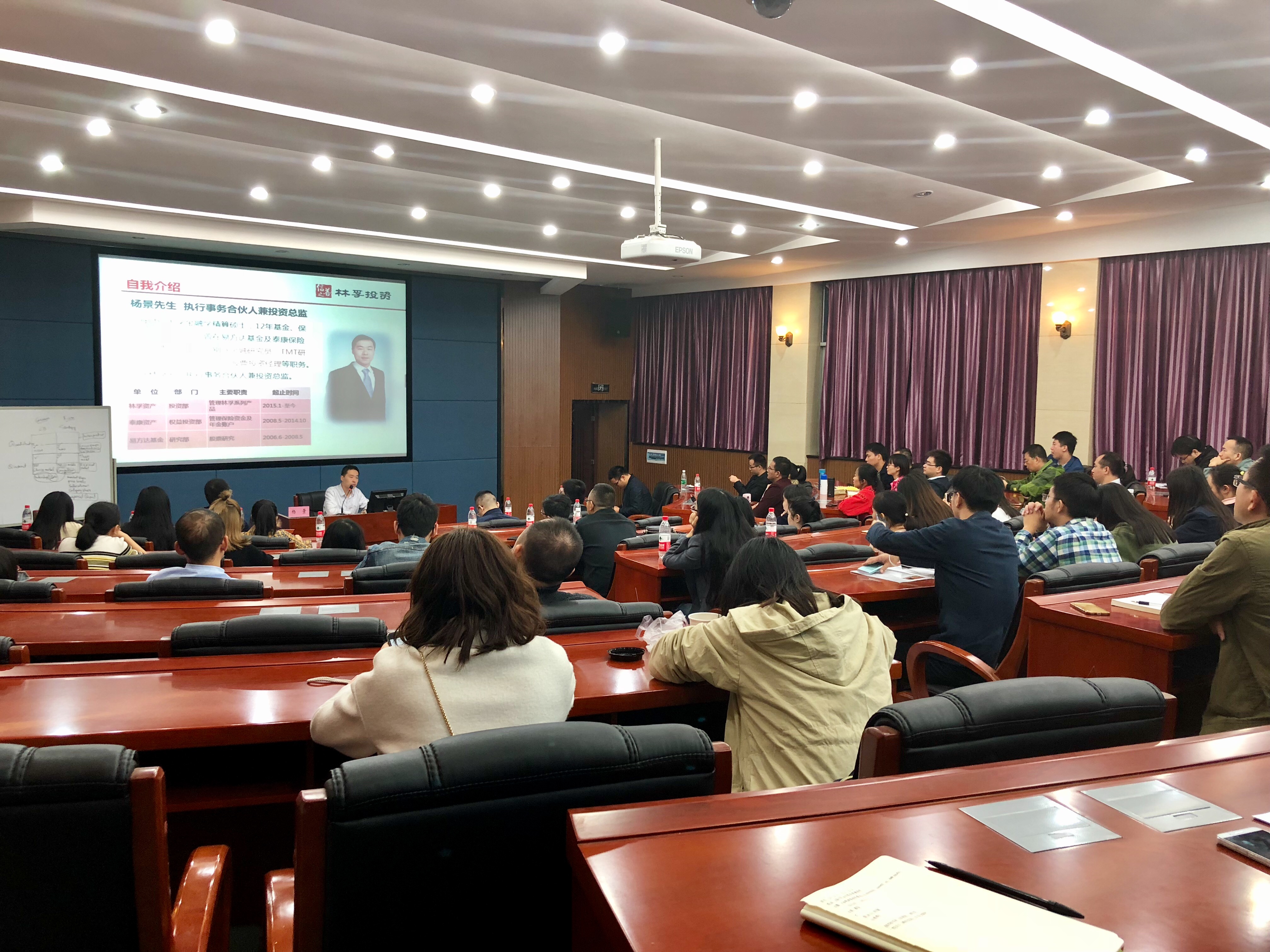 2017年10月14日晚上6点30分,在XK星空体育管理楼管阶二教室,上海林孚投资管理合伙企业执行事务合伙人兼投资总监杨景先应邀来星空官网开展了题为“机构的股票投资想法&BERKSHIRE HATHAWAY INC. ANUANL REPORTS ANALYSIS”的讲座。研究生辅导员周方毅老师和八十余名MBA学员及校友参加了此次讲座。
