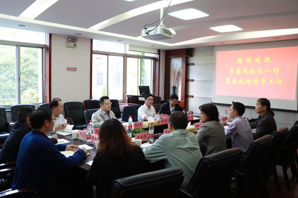 10月24日下午,李建成校长莅临XK星空体育调研指导工作,校党委副书记、纪委书记彭立威等陪同调研。学院党政领导班子成员参加座谈会,会议由任胜钢书记主持。