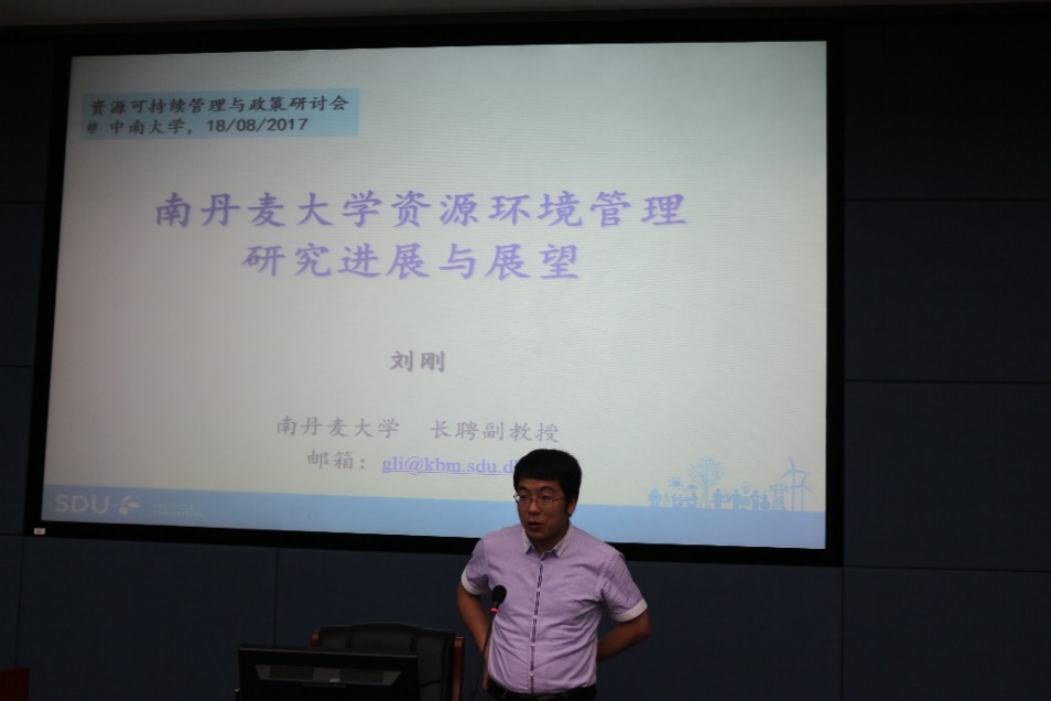 南丹麦大学刘刚副教授首先为我们做了题为《南丹麦大学资源环境管理研究进展与展望》的报告,详细讲述了