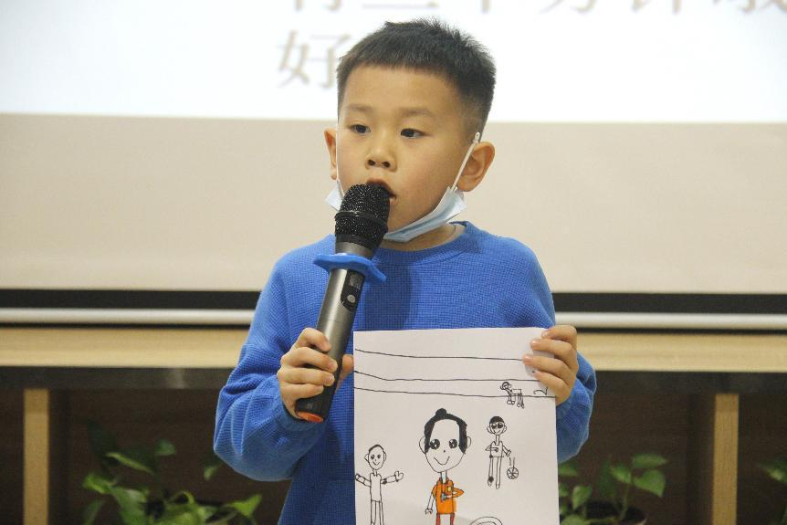 最后是绘画互动环节,志愿者鼓励孩子画出心中的模范,上台分享他们与榜样的故事,在分享交流中体悟榜样的可贵品质。