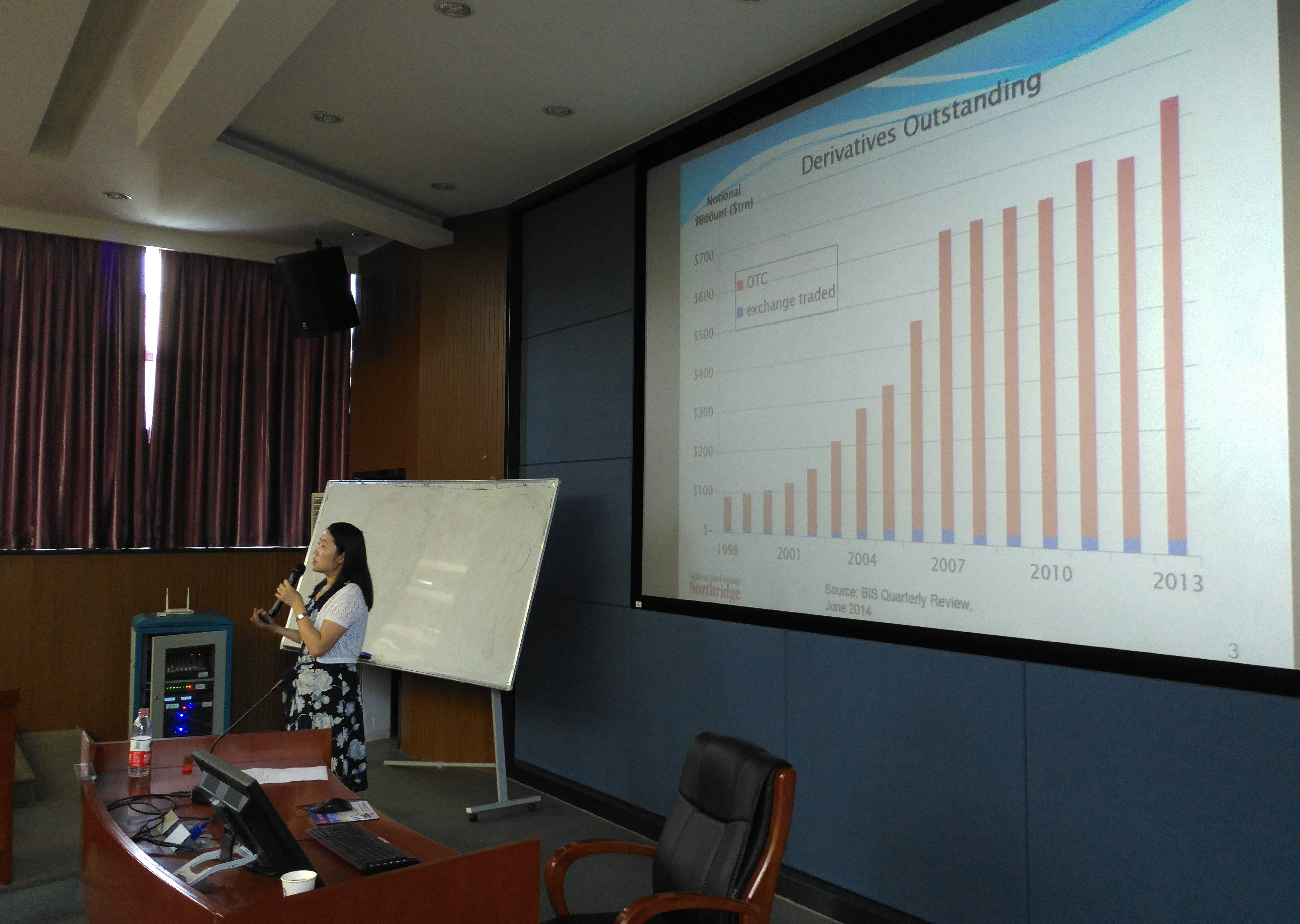 5日,金雁勃教授详细讲解了主题一“Fixed income securities”的具体内容。除了介绍基本的固定收益产品——债券外,还重点讲授了MBS,CMOs,ABS的基本特征及其运作方式,并结合美国次贷危机背景分析相应金融产品风险管理的实际操作要点与重要性。