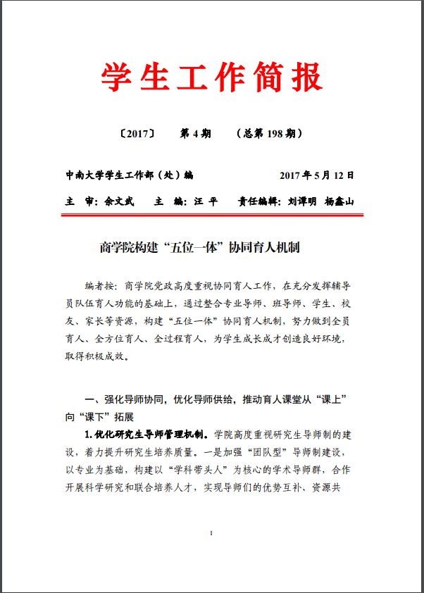 学校《学生工作简报》单篇推介星空官网协同育人工作经验