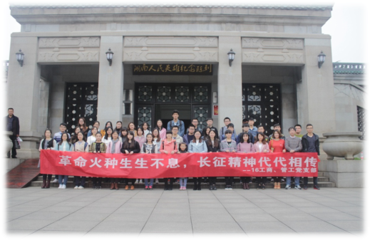 2016年11月19日,支部与2016级管工党支部联合开展以“革命火种生生不息,长征精神代代相传”为主题的纪念长征胜利80周年活动,组织全部党员赴长沙市烈士公园感悟烈士精神。