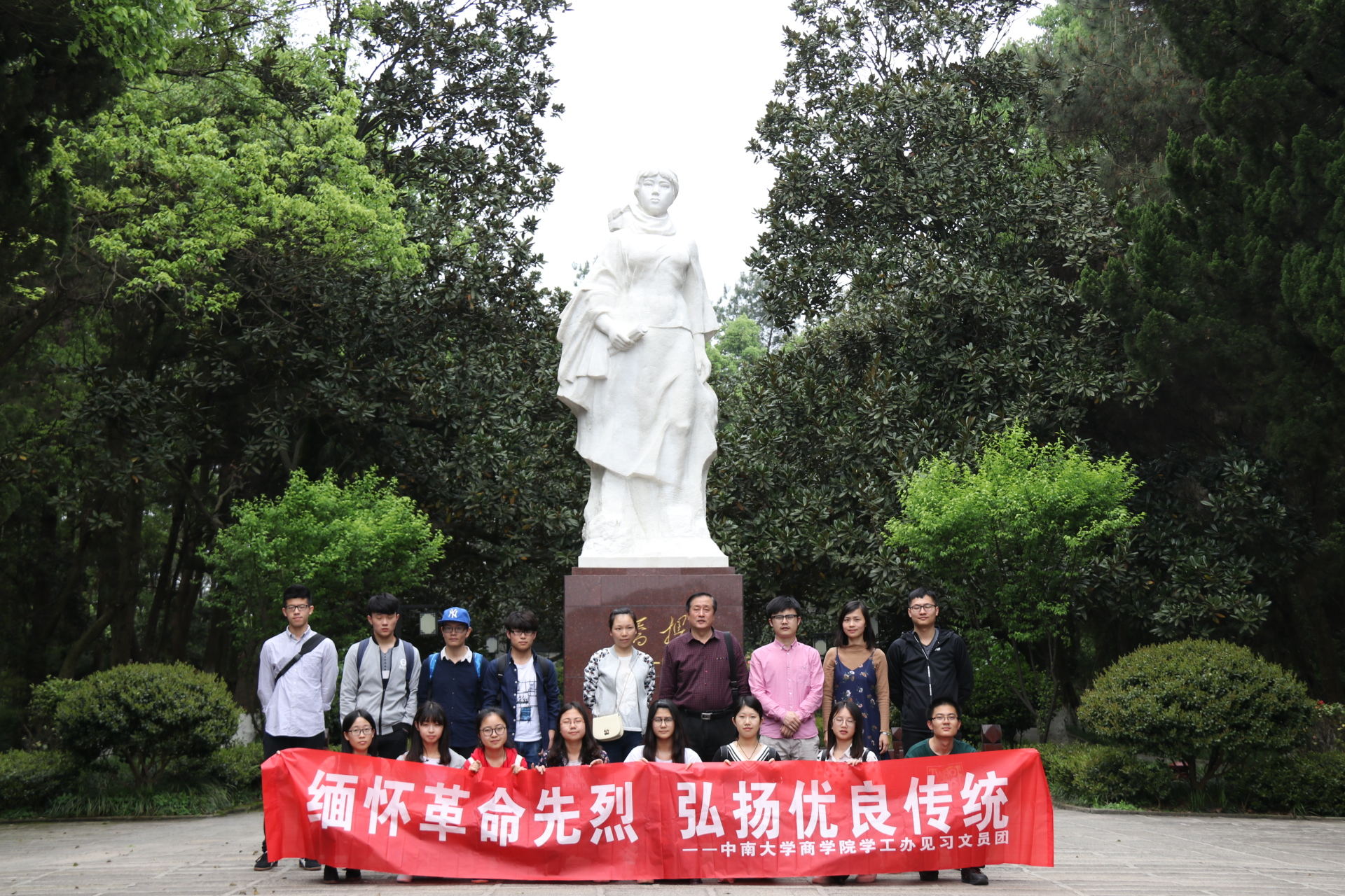 首先参观的是陈列馆。陈列馆从“忠厚传家的好女儿、忠烈为民的好学生、忠贞爱情的好妻子、忠义教子的好母亲,忠诚革命的好党员”五个方面展示了杨开慧烈士光辉灿烂的一生。在陈列馆中,师生们认真聆听讲解,深切感受到了革命先烈的优良品质。随后参观的是开慧故居。望着简朴的家具,抚摸着粗糙的土坯墙壁,师生们对革命先烈艰苦朴素的精神肃然起敬。最后,一行人来到烈士陵园。园内松柏苍翠,钟灵毓秀。师生们在墓前向烈士致敬,并拍照纪念。