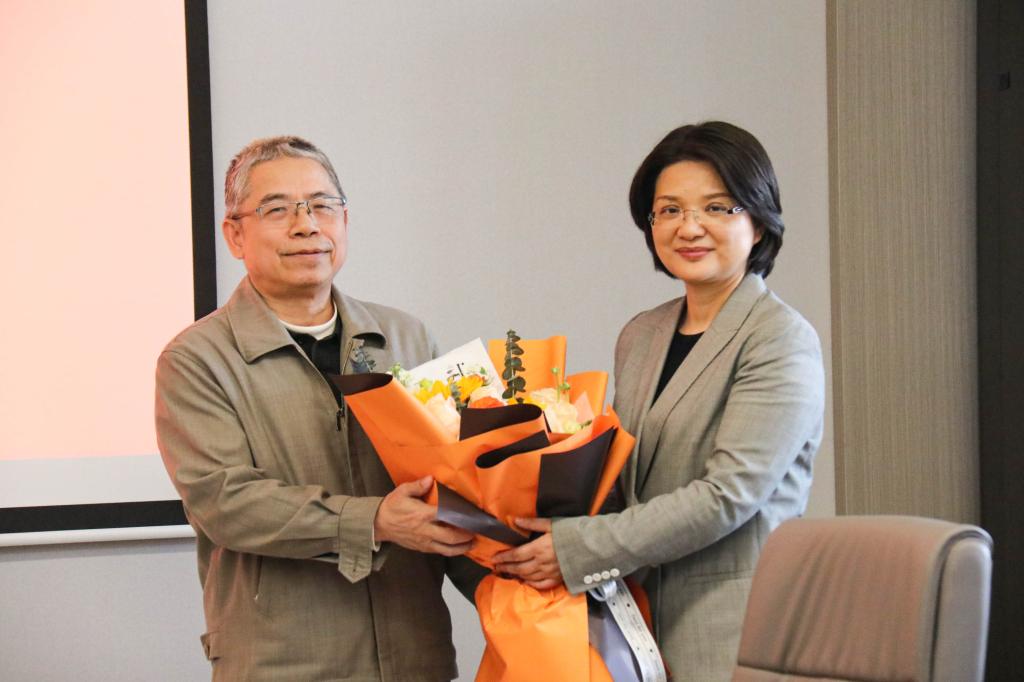 龚艳萍院长代表学院向罗新星教授表示崇高的敬意,感谢罗教授将毕生精力奉献给学院事业的发展,在教学、科研、公共服务等方面为青年教师树立了标杆。她鼓励青年教师学习罗教授踏实认真、以院为家、无私奉献的精神,并代表全院师生向罗教授敬献鲜花。