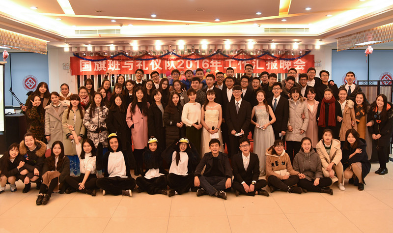 随后,国旗班班长杨伟明对2016年国旗班的工作进行了汇报,从四个方面介绍了国旗班日常训练工作和升旗任务的完成情况。他以“爱国”“爱旗”“敬业”“奉献”概括国旗班精神。礼仪队队长廉洁也对礼仪队2016年的工作进行了总结展示,向大家展现了队员们丰富多彩的训练生活,并在发言最后真诚地感谢礼仪队指导老师和全体成员这一年的辛苦付出。