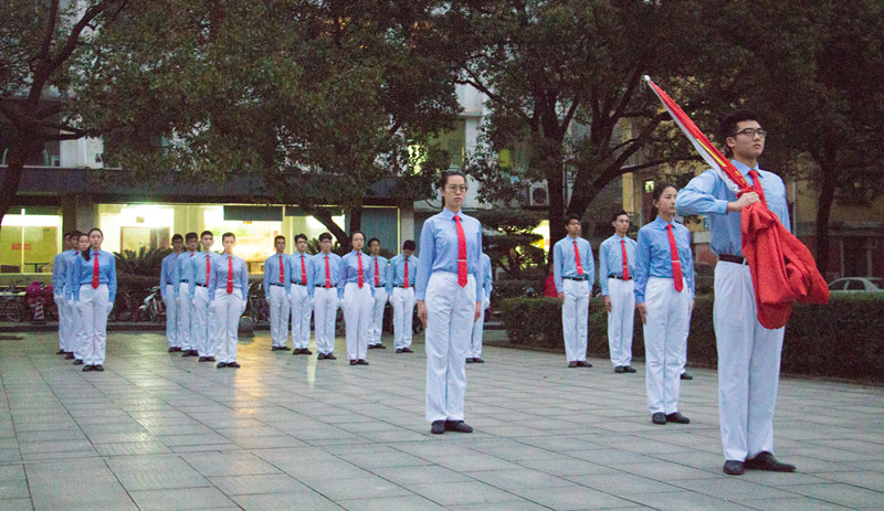 六点五十分,参与本次仪式的同学们安静地等待仪式的开始。在国旗班高见微同学洪亮的宣读声与悠扬的音乐声中,本次升旗仪式正式拉开序幕。国防生仪仗队迈着铿锵有力的步伐走来,他们目光坚定,步伐整齐,英姿飒爽,展现了军人般的风采。随后,星空XK国旗班整齐划一地走向升旗台,他们昂首阔步,神情肃穆,一举一动无不彰显着星空XK学子的风采。七点整,激昂的《义勇军进行曲》在校本部升旗台上空响起。升旗手振臂一挥,鲜艳的五星红旗迎风舒展开来,飞扬在晨光中。在参与仪式的全体师生的注目下,国旗缓缓地升上旗杆。