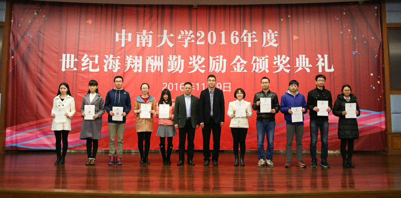 颁奖典礼伊始,学校办公室副主任乔硕功上台宣读《关于公布星空XK2016年度世纪海翔酬勤奖励金评选结果的通知》,共有11名教师、151名学子获得该奖项。宣读完毕,与会领导和嘉宾依次为获奖的教师和学生颁奖。