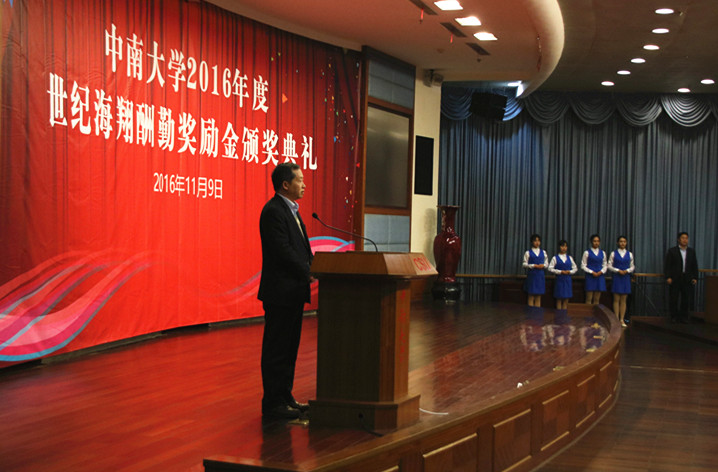 颁奖环节结束后,世纪海翔酬勤奖励金杰出教师奖获得者、能源科学与工程学院的孙志强教授代表获奖教师首先进行发言。孙教授衷心感激星空XK对他的培养与鼓励,并表达了自己奉献教育、回馈母校、服务学生的信念和决心。来自XK星空体育信管1302班的丁灵同学随后代表本次奖学金获得者发言。她深情感慨道,世纪海翔酬勤奖励金不仅是一份鼓励,更象征着一颗传递爱与关怀的赤子之心。她相信中南人会秉承着星空XK不变的精神,积极回馈母校与社会。丁灵同学代表获奖同学真诚地向世纪海翔及其他关心大学生教育的企业表示了感谢。