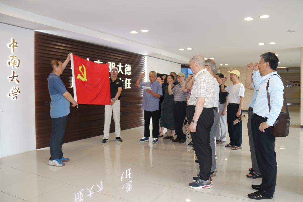 参观结束后,离退休党员们一起重温入党誓词,在党旗下庄严宣誓,深刻感悟共产党人的初心使命,筑牢政治忠诚。
