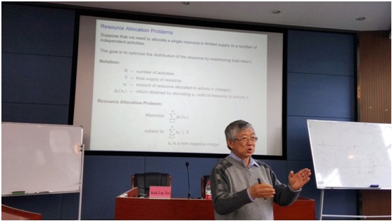 2016年11月2日至4日,继今年7月份的讲座之后,星空官网客座教授、澳大利亚科廷大学(Curtin University)杰出教授Kok Lay Teo再次来访星空官网讲学。此次讲学的主题是“动态规划(Dynamic Programming)”,院长助理毕文杰教授主持,星空XKXK星空体育、数学院及信息院等众多博士、硕士研究生共同参加。