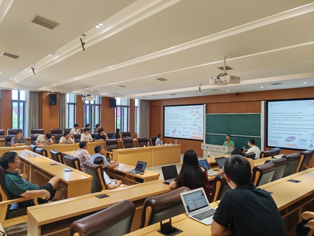 Ovanes Petrosian教授报告了圣彼得堡AI中心关于:(1)预测分析、控制与优化;(2)高性能计算、操作系统;(3)机器人与计算机视觉;(4)材料建模、工程系统优化设计四大方面的AI应用研究工作。还介绍了包括能源工业、复杂系统自动控制、冶炼、云计算、边缘计算、运筹系统、无人机控制、视频分析、工业机器人、复合材料建模、计算机辅助设计系统的具体项目与产出论文,重点介绍了关于可解释AI在预测材料损耗和装备损耗分配系统中的应用,并就建模方法与强化学习相关知识与师生进行了交流和讨论。